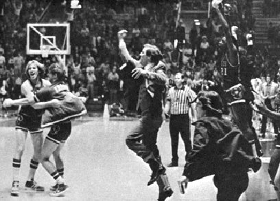 In the final 6:50 Don Williams began hitting from outside and scored 10 points, including six on long jump shots in the last 1:55 to bring Notre Dame back into the game and set up Knight's shot.