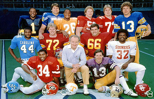 Left to right, top to bottom: Tim Krumrie, lineman, Wisconsin; Jimmy Payne, lineman, Georgia; Mark Stewart, linebacker, Washington; Billy Ray Smith, lineman, Arkansas; Vernon Maxwell, linebacker, Arizona State; Jim Arnold, punter, Vanderbilt; Mike Pitts, lineman, Alabama; Mike Richardson, defensive back, Arizona State; Ricky Hunley, linebacker, Arizona; Terry Kinard, defensive back, Clemson; Eric Williams, defensive back, North Carolina State; Steve Brown, defensive back, Oregon.